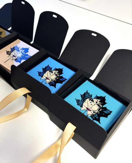 Die Glasuntersetzer Hilde.100 erscheinen in limitierter Auflage von 50 Sets (4 Motive).